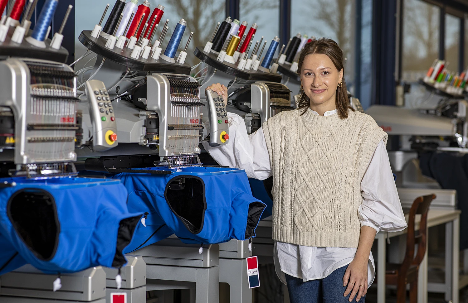 Isabel vertelt: “Mijn vader was bijna net zo oud als ik nu toen hij de zeefdrukkerij overnam. In die tijd was het een zeefdrukkerij waar klanten de kleding zelf konden aanleveren, maar al snel kwam de verkoop van de kleding er ook bij. Inmiddels is onze focus volledig verschoven naar de B2B- sector. We kleden bedrijven van top tot teen – van pet tot schoenen en alles daartussen. ”